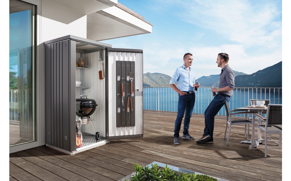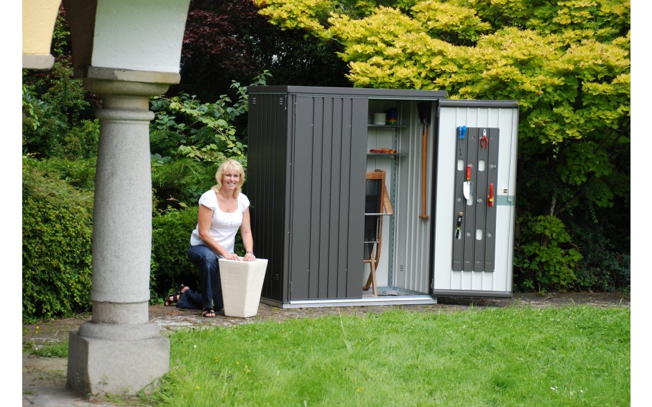 Where room is scarce, the Equipment Locker shows its value. In the garden, on the terrace, in the garage or on the balcony, it organises and stores your tools without restricting your living space. With this locker, you can store your garden implements, tools, children’s toys and other similar items protected from rain and theft. Its compact size and elegant design allow the Equipment Locker to blend in harmonously with its surroundings.