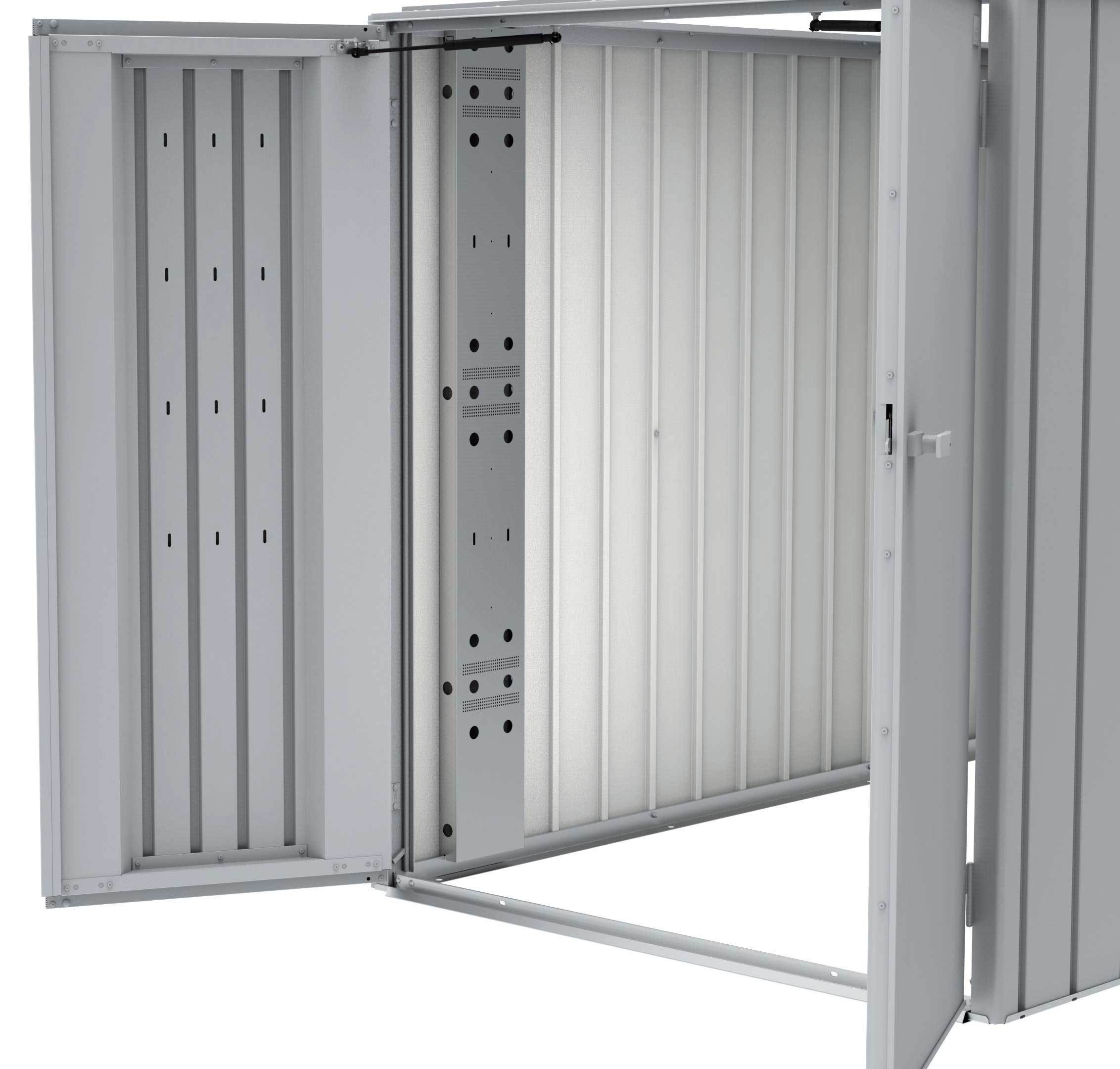 With double doors the MiniGarage is easily accessible and has gas assisted spring damper to prevent them from slamming closed. These sturdy double doors and three way locking mechanism to prevent theft and keeping your belongings safe.