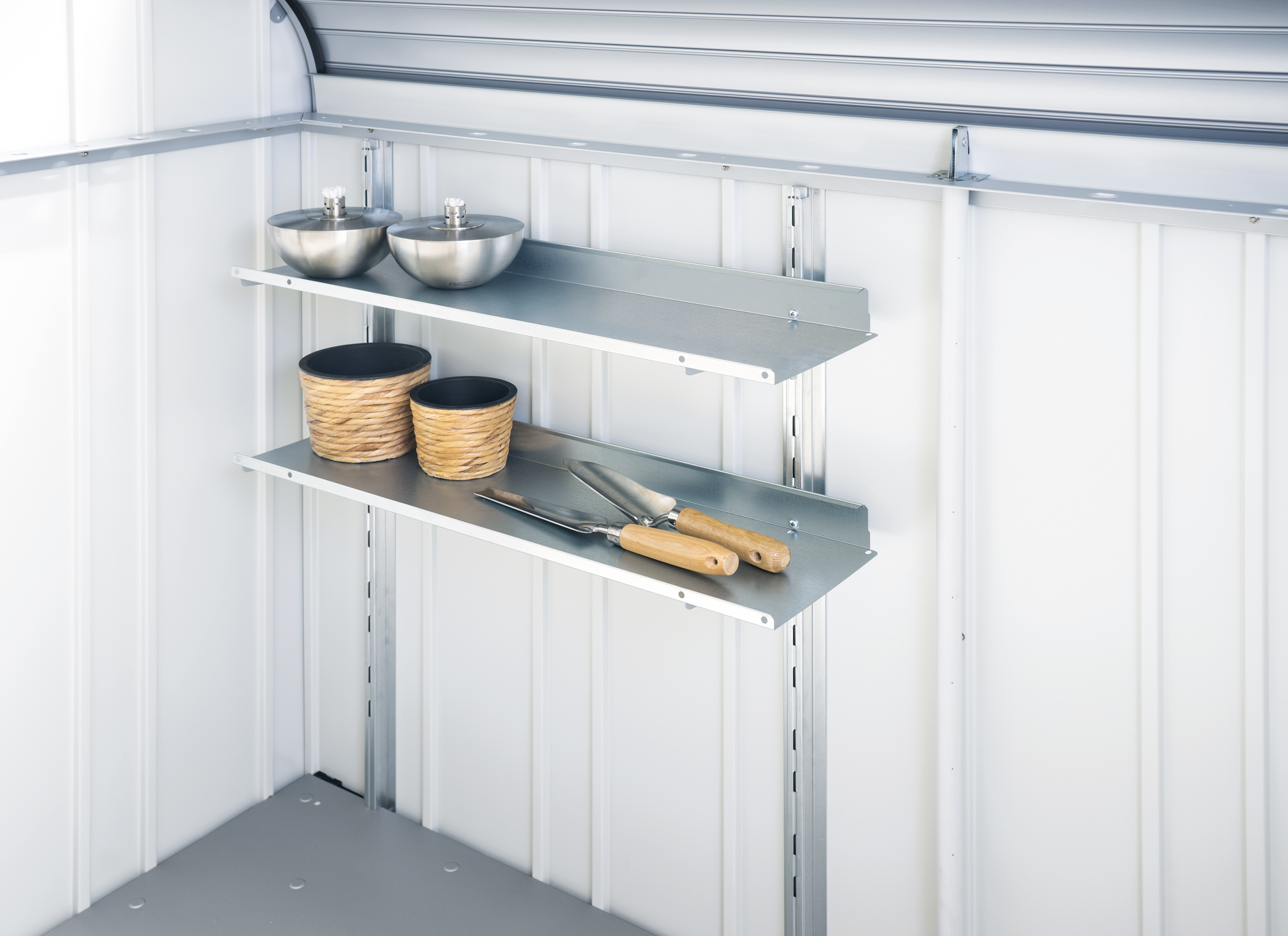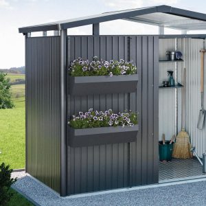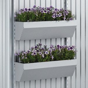 FloraBoard – £199 – Two rails of the same colour of the shed are attached to the outer wall and the flower boxes can be hung on these at a suitable height. Plastic inserts for easier planting are included in the standard delivery scope.