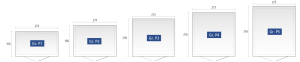 P1 – 273 x 158 x 227, P2 – 273 x 198 x, P3 – 273 x 238 x 227, P4 – 273 x 278 x 227, P5 – 273 x 318 x 227