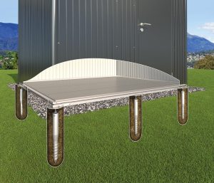 SmartBase Plus – from £1349 – Optimal solution for slopes and lawns. Patented system with ground screws to compensate for slopes of up to 15cm.