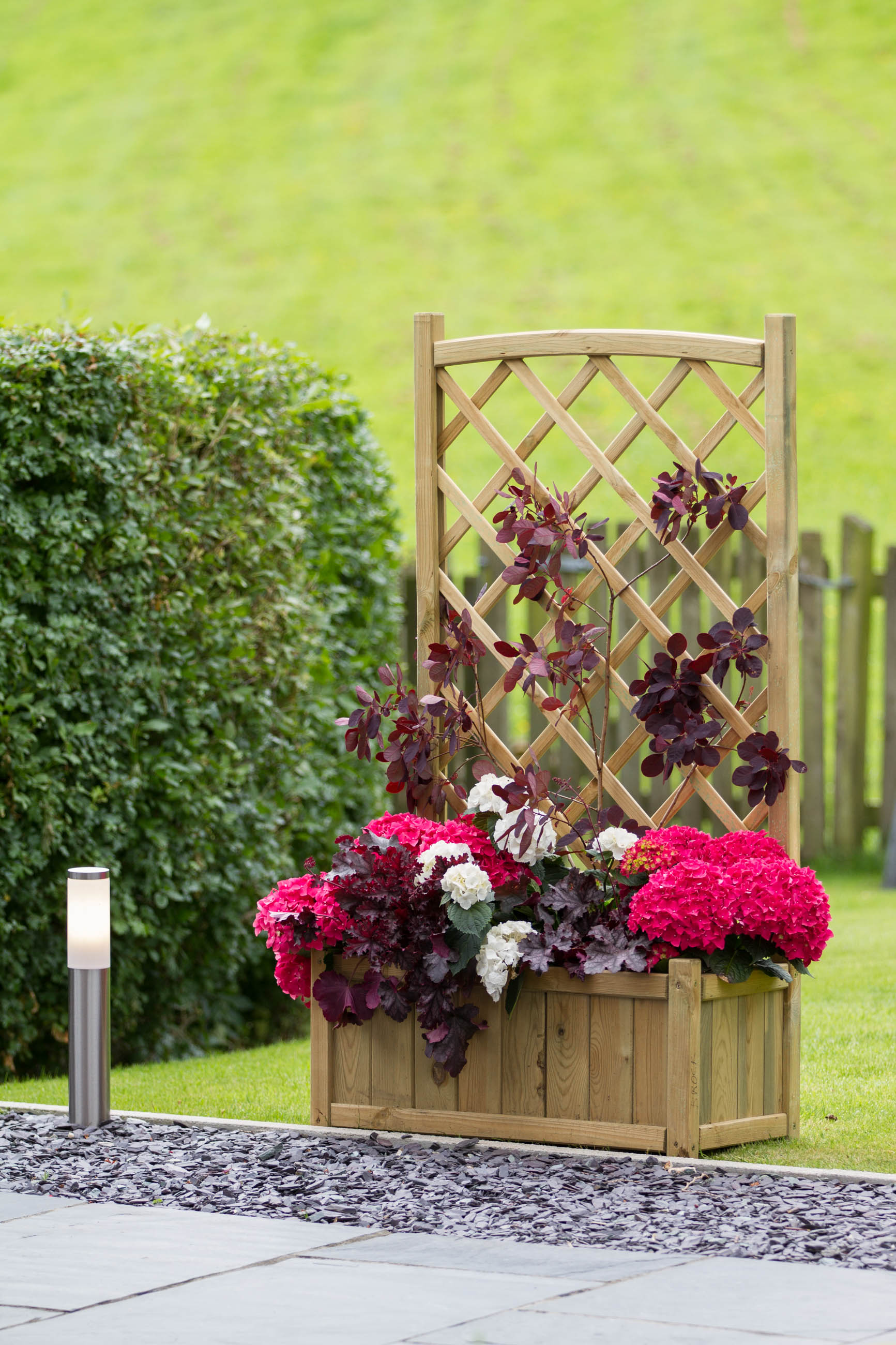 The Cambridge Planter can fit in the most compact of spaces, whilst still adding a burst of colour and style to your garden. Use as a free-standing structure or secure to a wall or fence for extra support. A beautiful planter box with diamond trellis back panel.