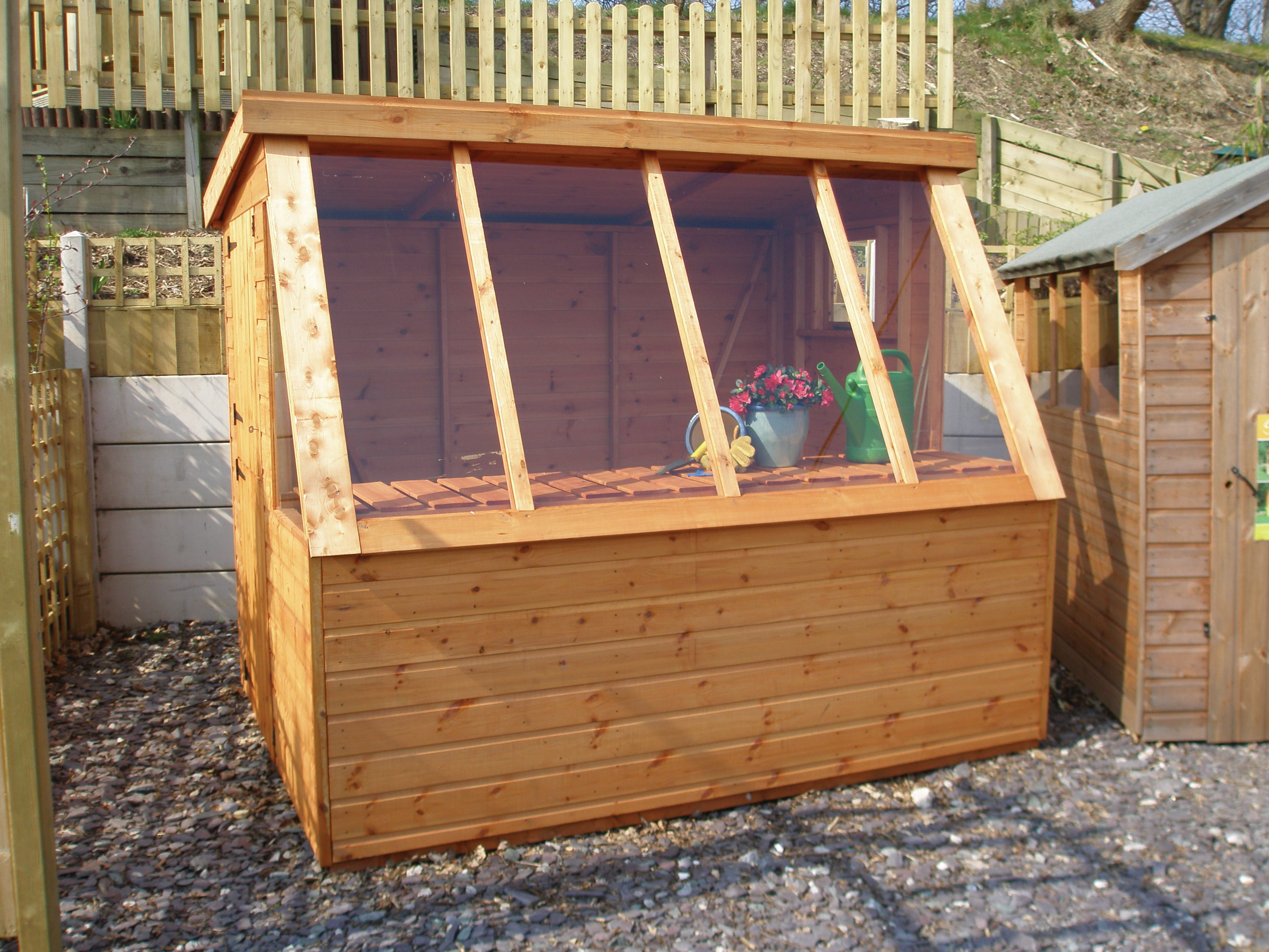 Front window is 10ft and the building has 4ft depth storage area and 6ft depth potting shed area |