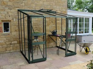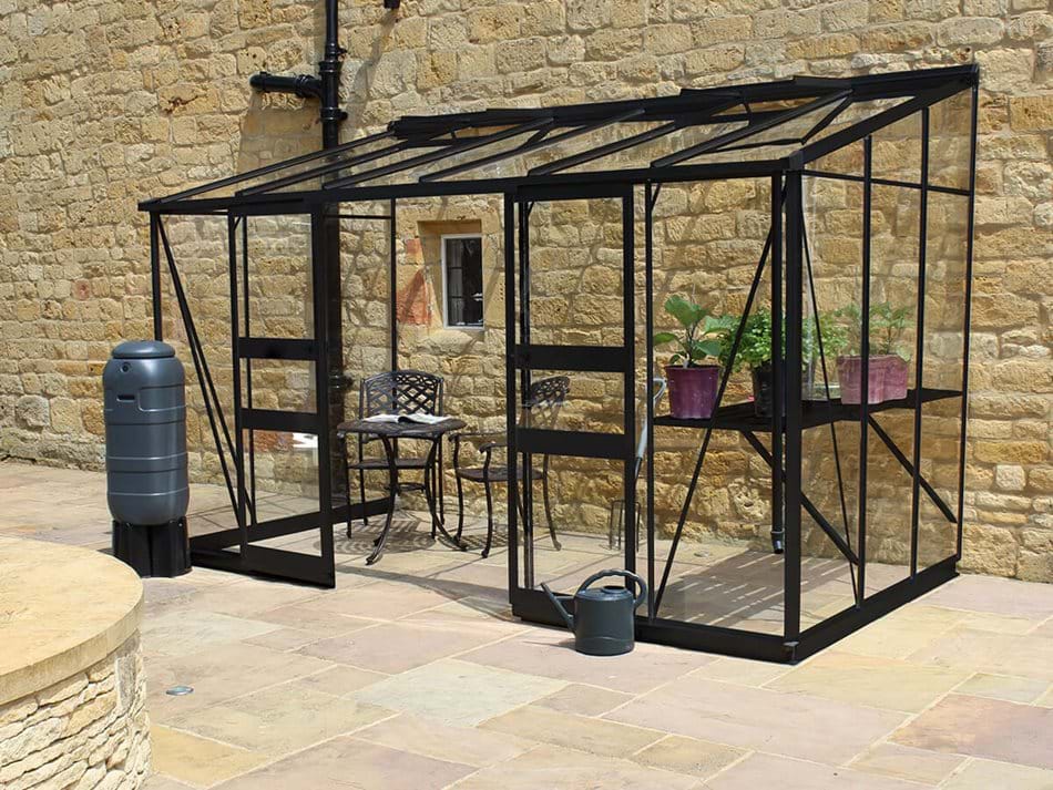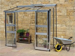 The broadway lean to greenhouse is available in three frame finishes (silver aluminium, green or black powder coating), as well as a choice of two glazing options, 3mm full length toughened safety glass and 6mm twin wall polycarbonate.