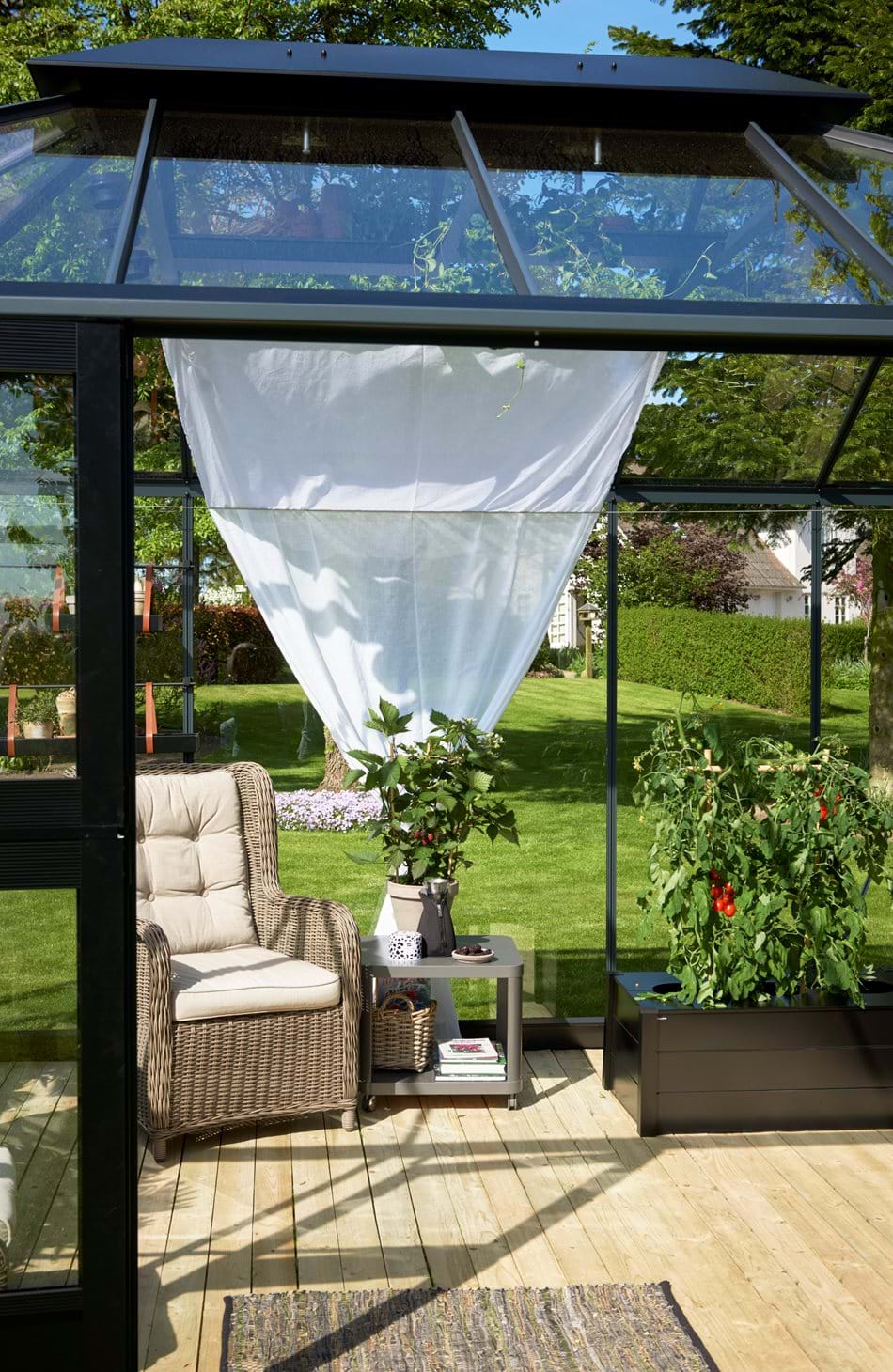 You can create shading by hanging light fabric curtains from a wire at the apex of the greenhouse and let the other wire hold the curtain against the glass in the side of the greenhouse.