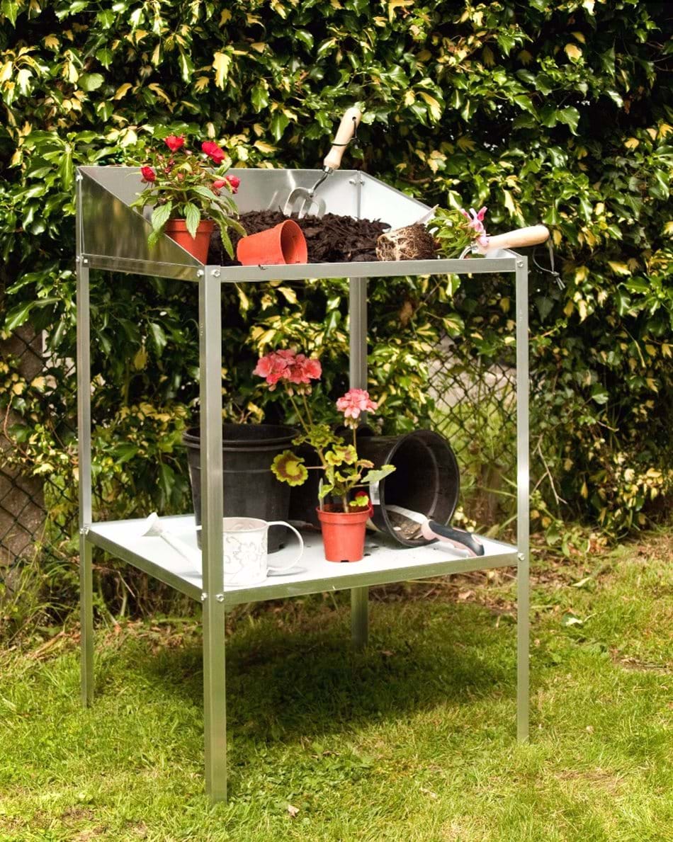 A potting bench for small gardening tasks and organisation.