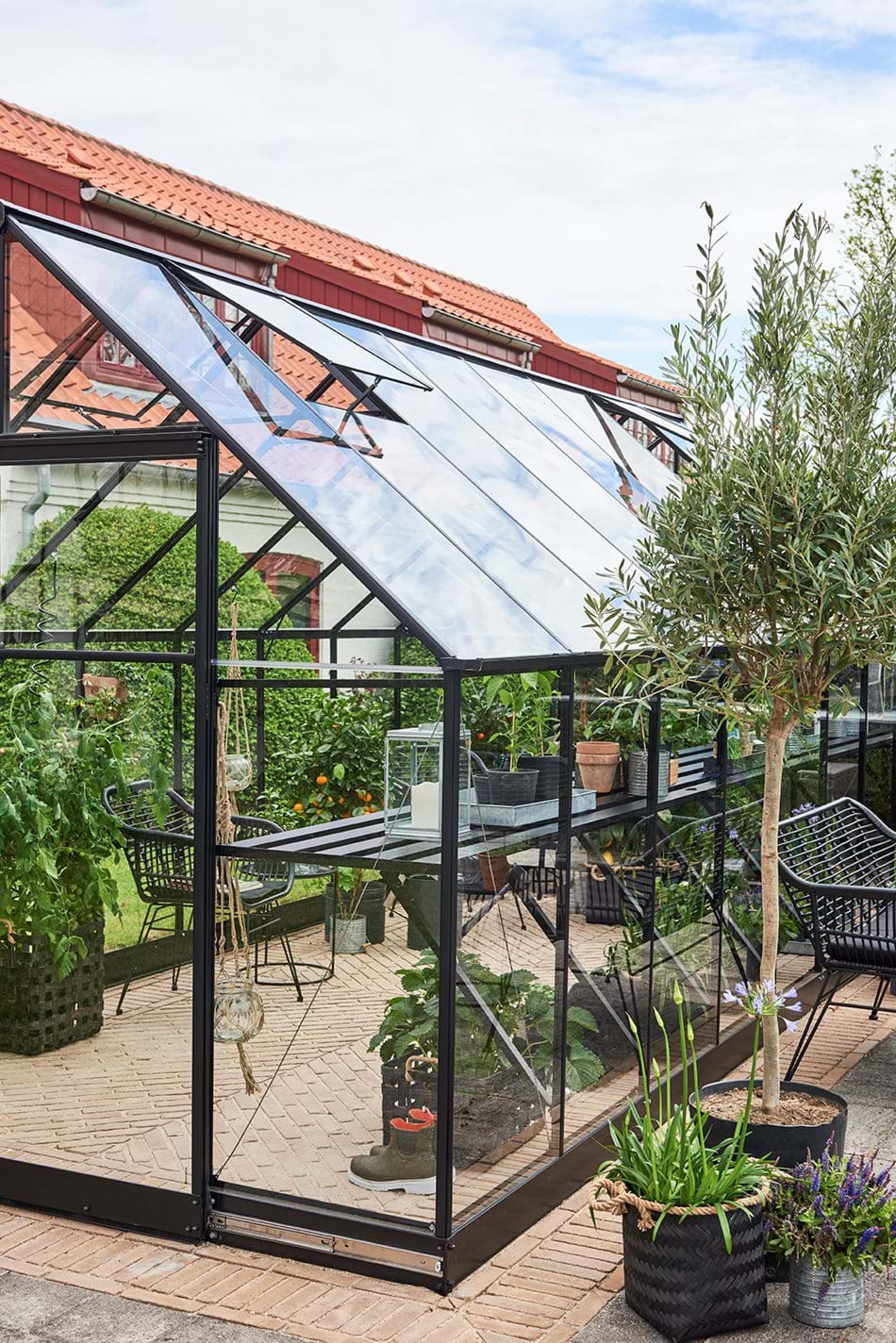 With a Halls Qube+ greenhouse you get the same great design that you do in a Halls Qube. The greenhouse uses strong aluminium profiles that guarantee a strong and dependable greenhouse, but at the same time having a simple and refined look.