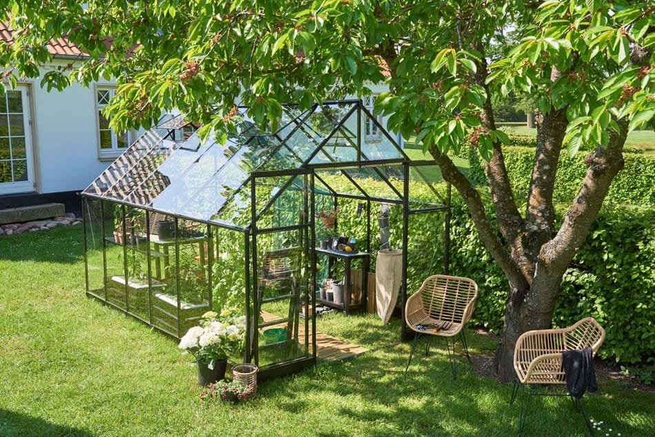 The Halls Qube+ boasts a double door and extra width that gives more room and a larger sense of space. It is therefore perfect as your personal cosy space, where you can dive into a book while the sun warms you or it can function as your own little garden hideaway, where you grow your own herbs, cucumbers or beans