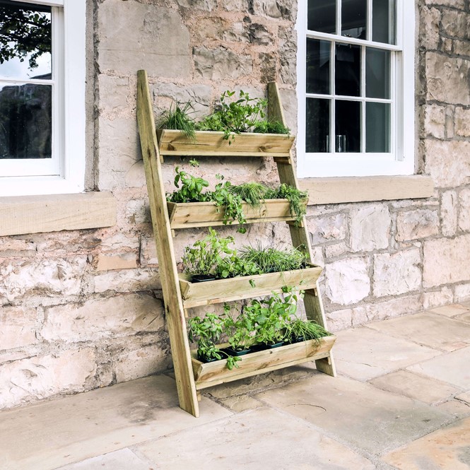 The Ladder Planter makes a lovely herb garden for the Grow Your Own enthusiast; but could also be used for a stunning display of flowers and colourful trailing plants.
