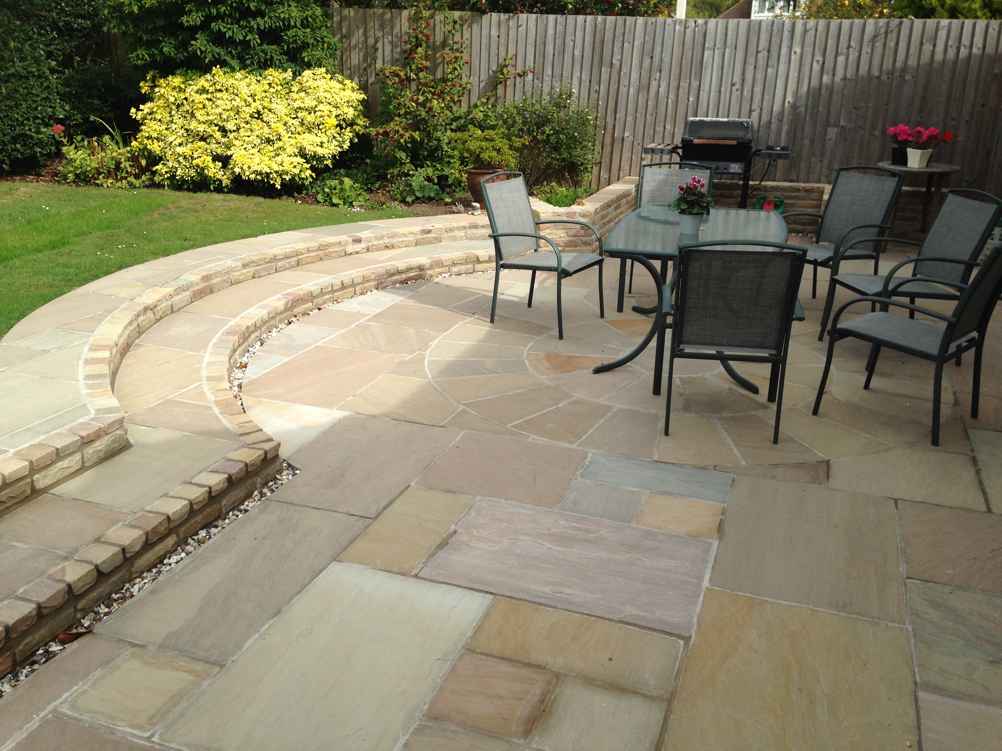 RAJ has a colour mix including yellow, pale greys, pinks and brown on base colour of a subtle light green. The overall appearance is quite autumnal. The paving has hand cut edges and a riven surface which resembles hand cut yorkstone in its appearance so is an ideal choice for a traditional garden setting.