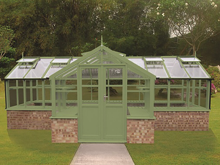 This greenhouse pictured was sited on a dwarf wall. However as standard the building is constructed upon a boarded base.