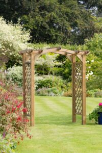 The Venus Arch enhances any garden walkway with it’s curved roof and diamond trellis side panels. Both aesthetically pleasing in its natural state, as well as covered in a variety of your favourite climbing plants. A strong structure with 90mm sized posts that can be secured in the ground with the optional fixing kit.