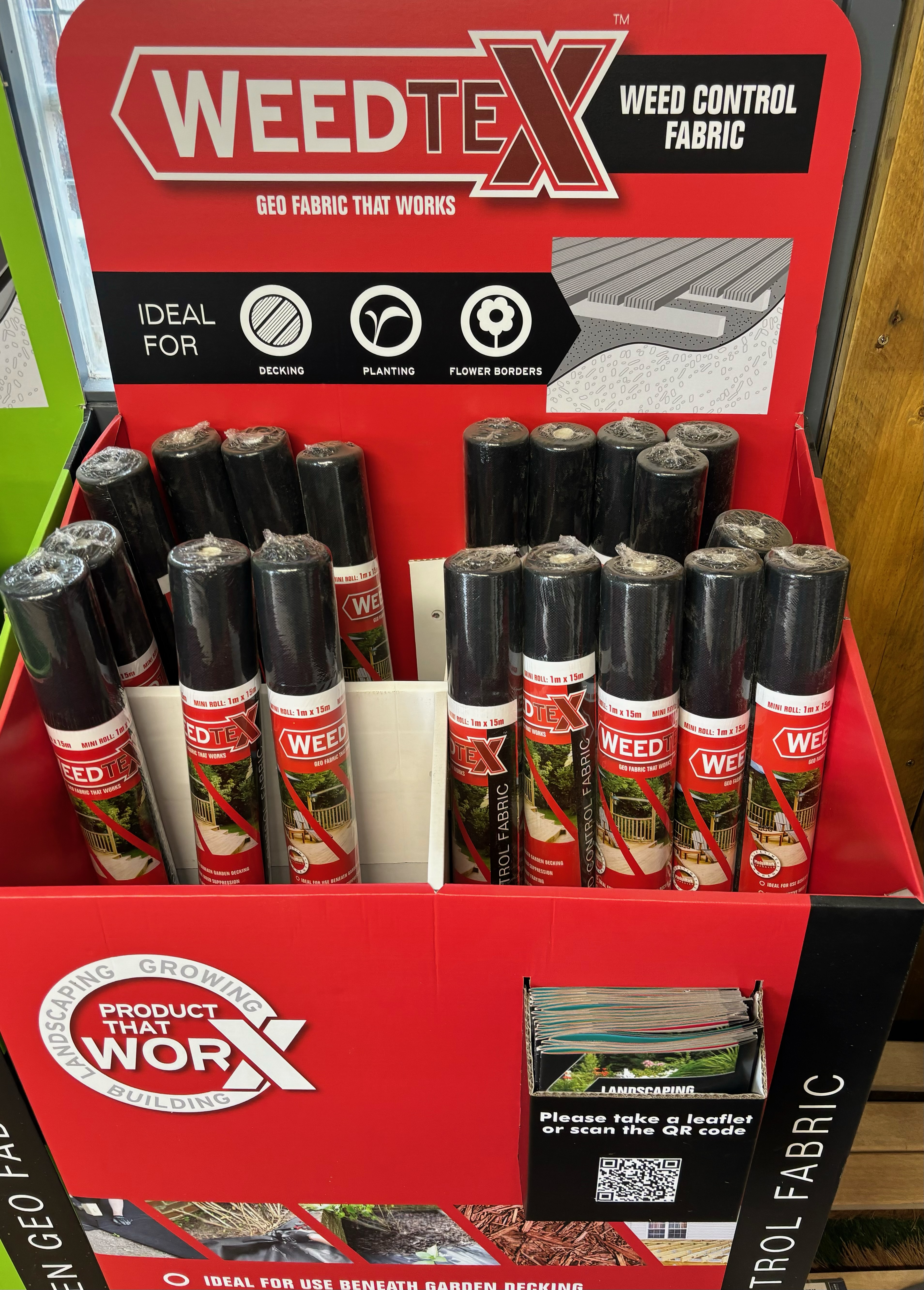 A standard duty weed control fabric for under decking and in flower and shrub borders.